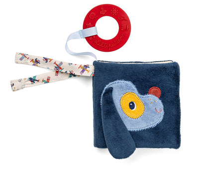 Smart navy rugby shirt with stripy sleeves and a red tractor applique,