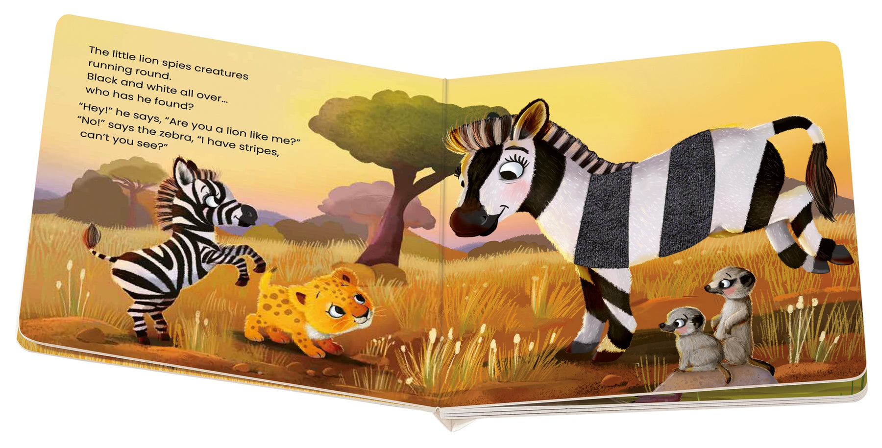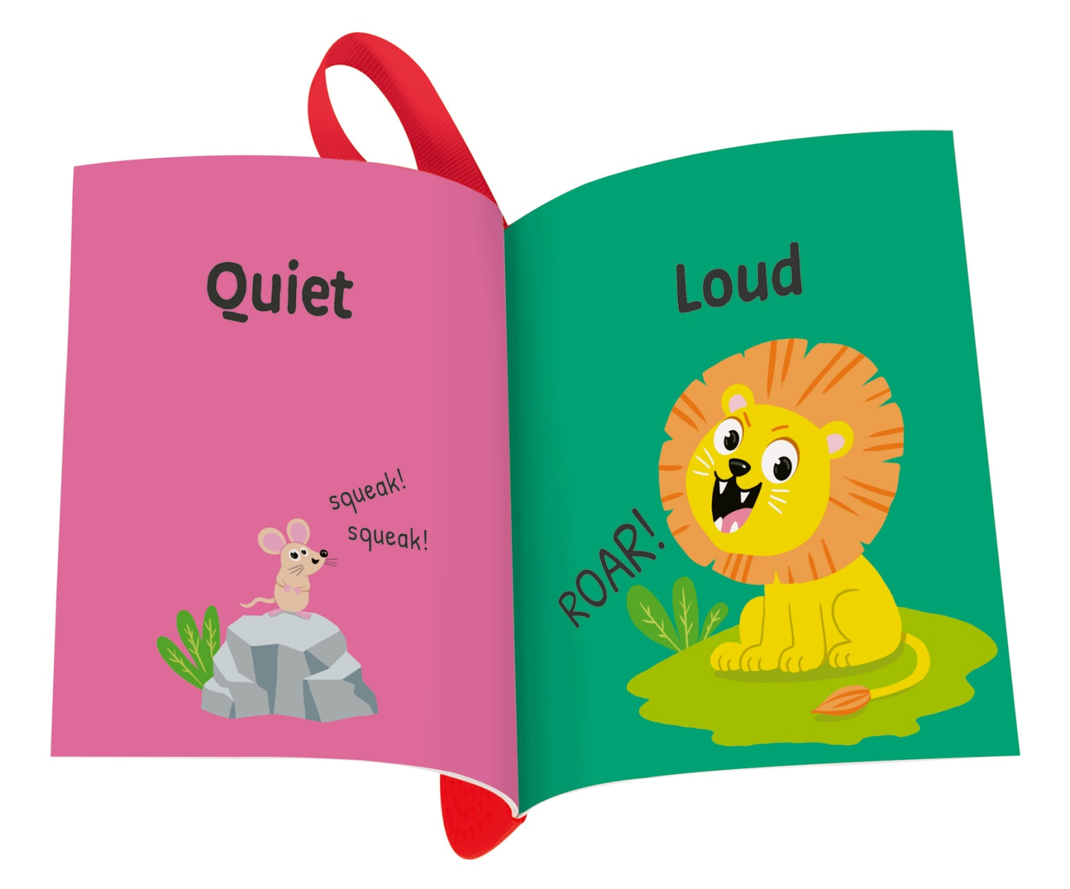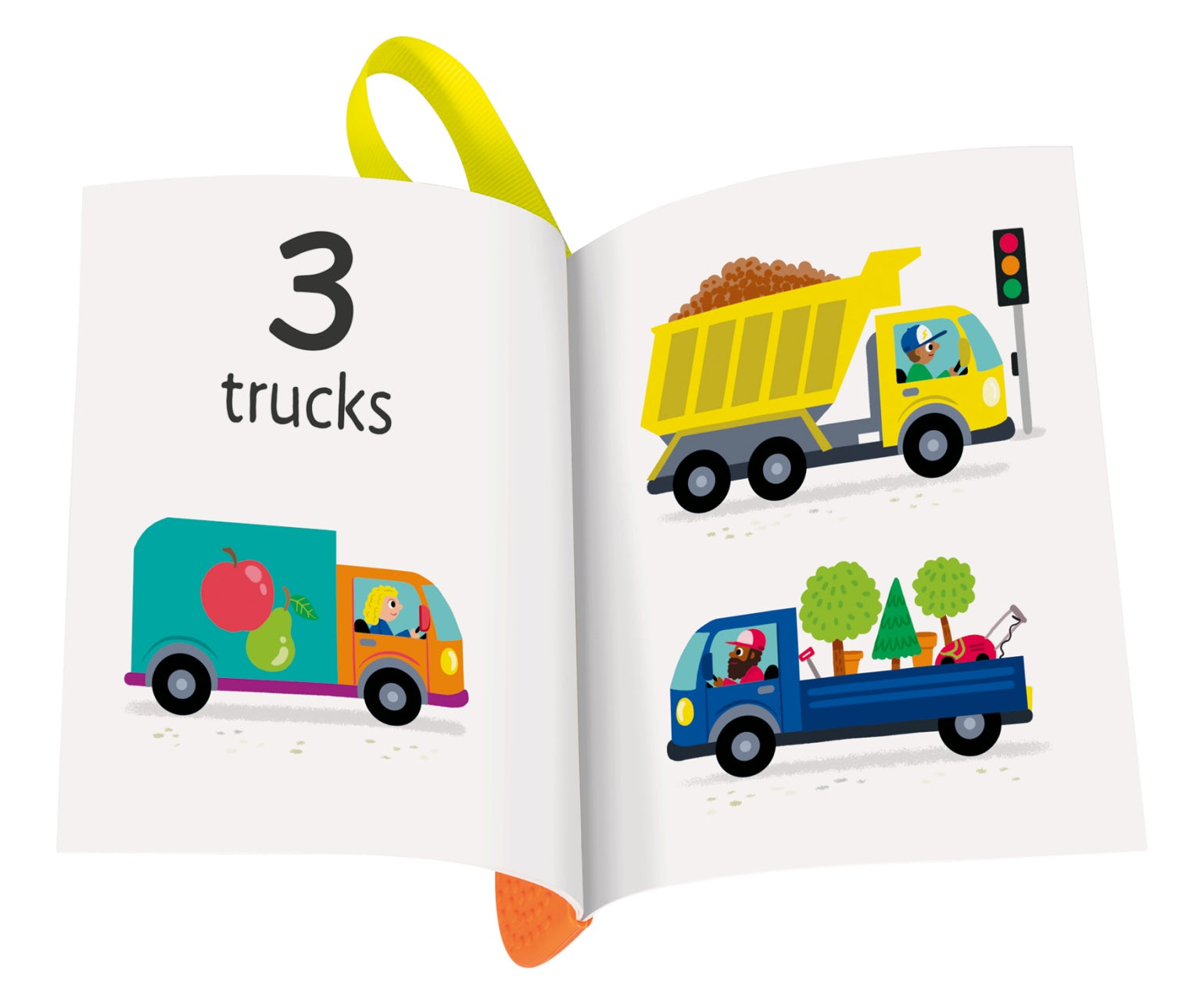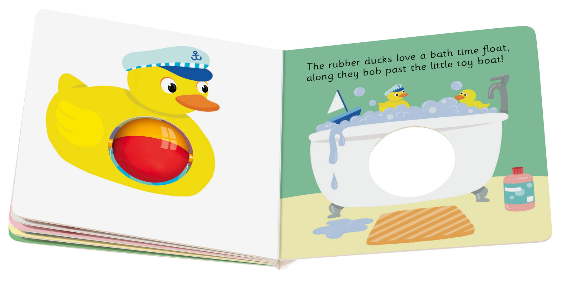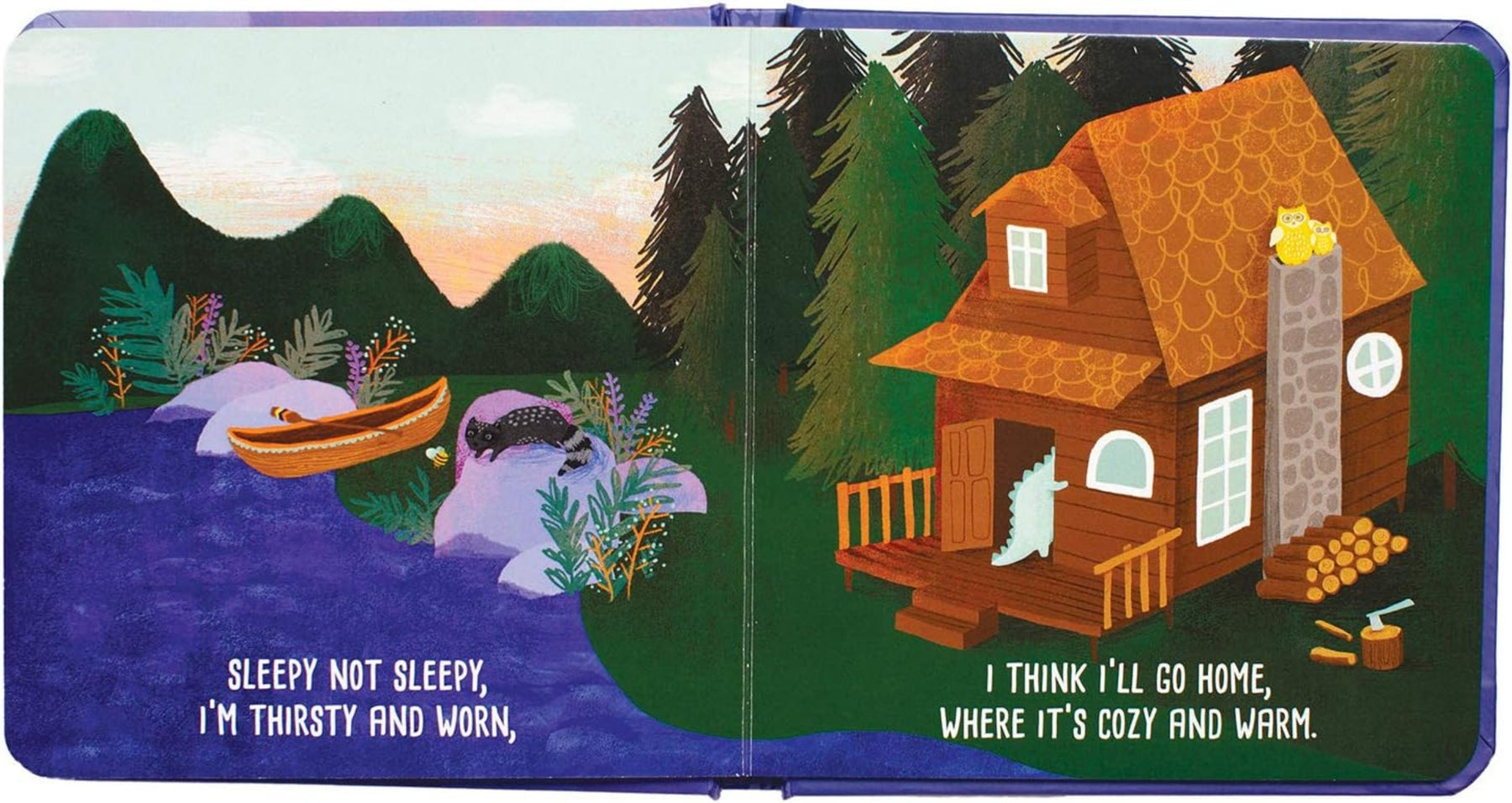 Cardboard book with five double pages, each with a different night-time scene. You then have to find specific things, the owls or the streetlights for example. When you've found them, press the button at the bottom of the page and little lights will shine to show where the items are.