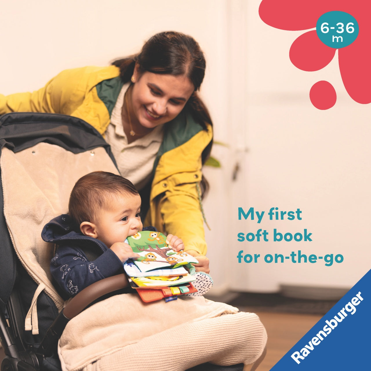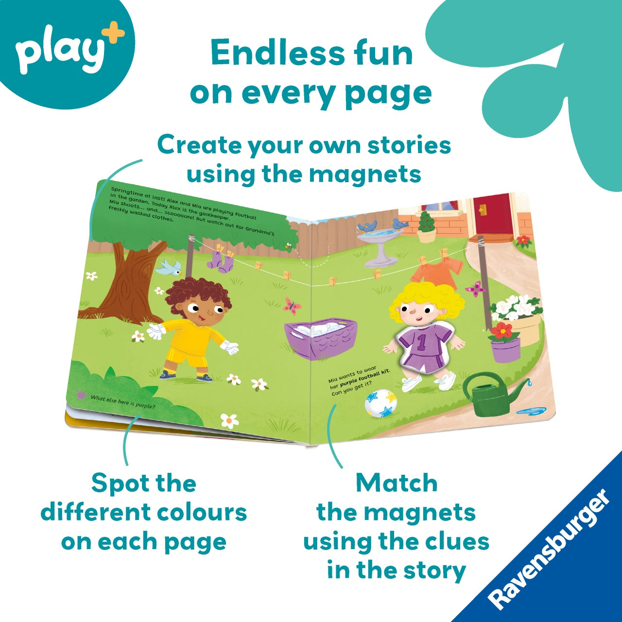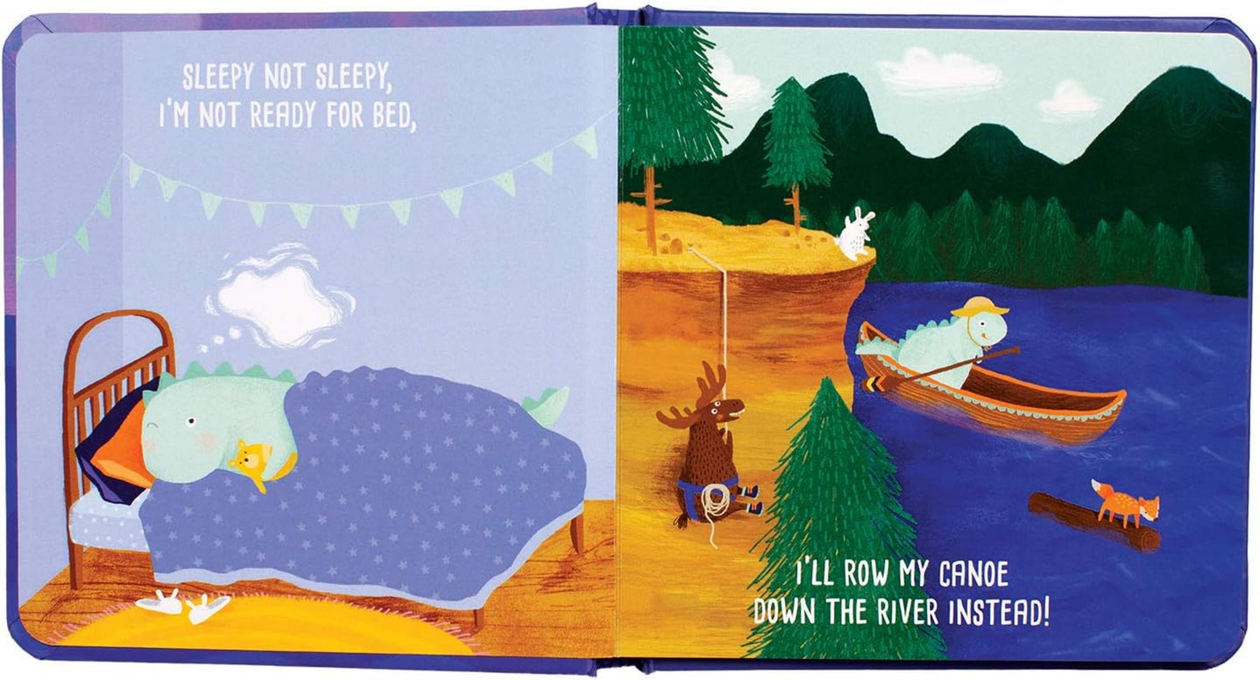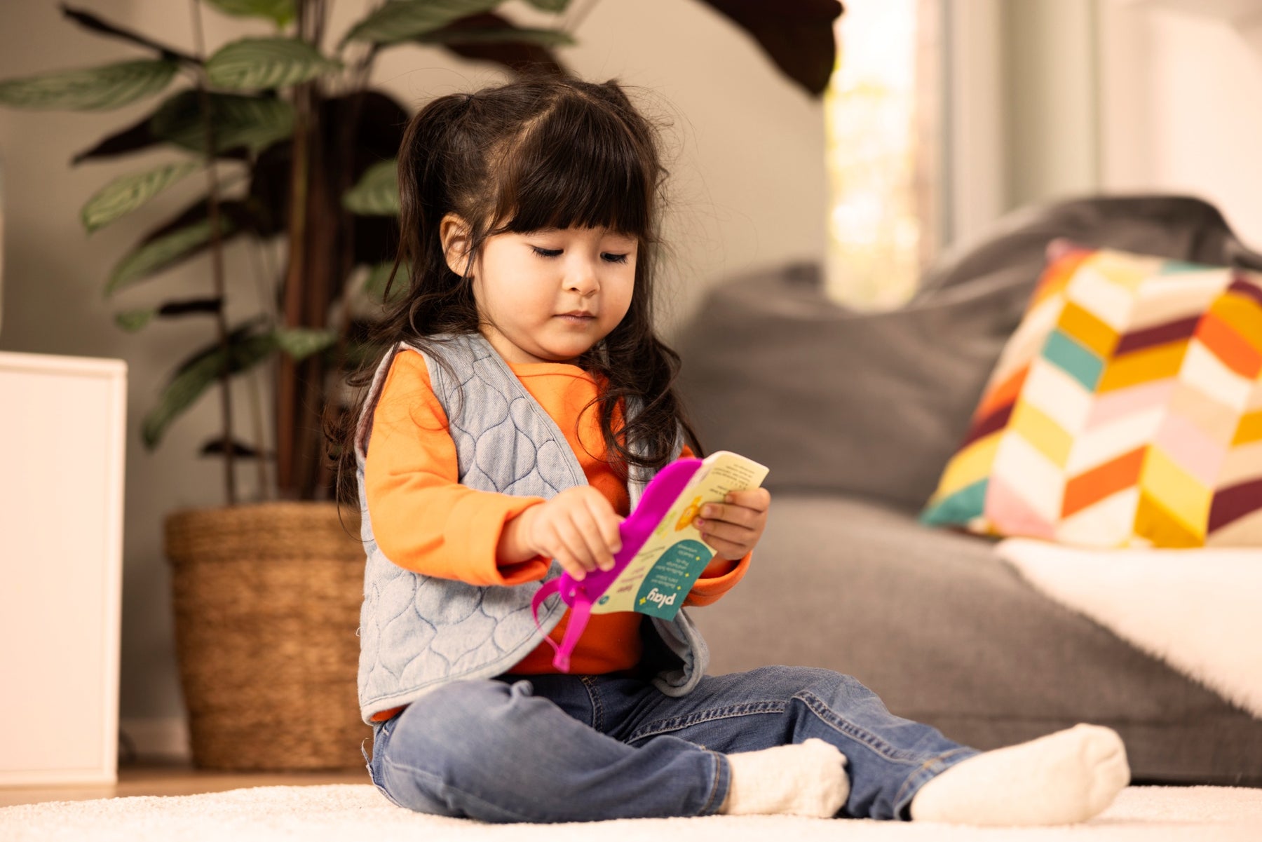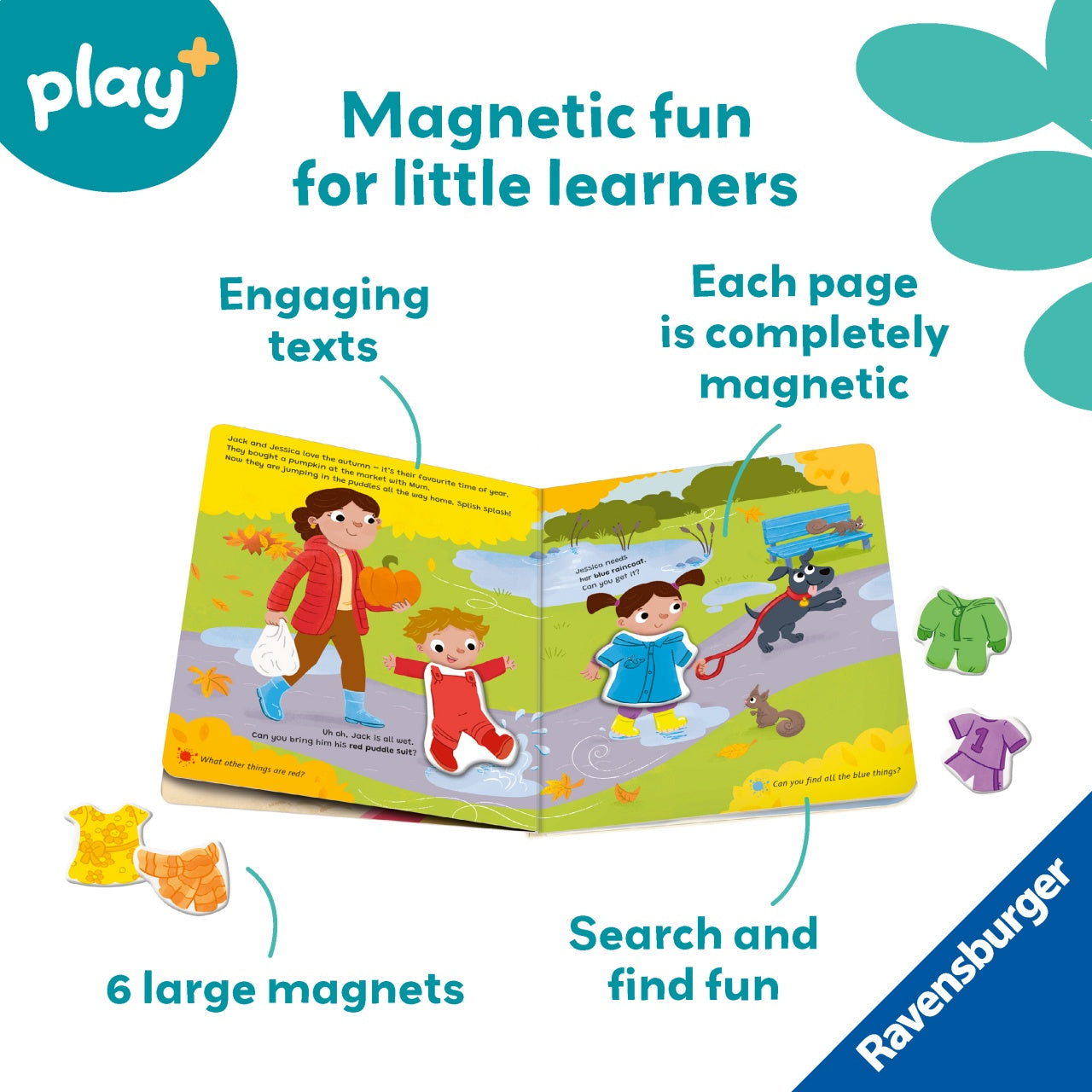 Cardboard book with five double pages, each with a different night-time scene. You then have to find specific things, the owls or the streetlights for example. When you've found them, press the button at the bottom of the page and little lights will shine to show where the items are.