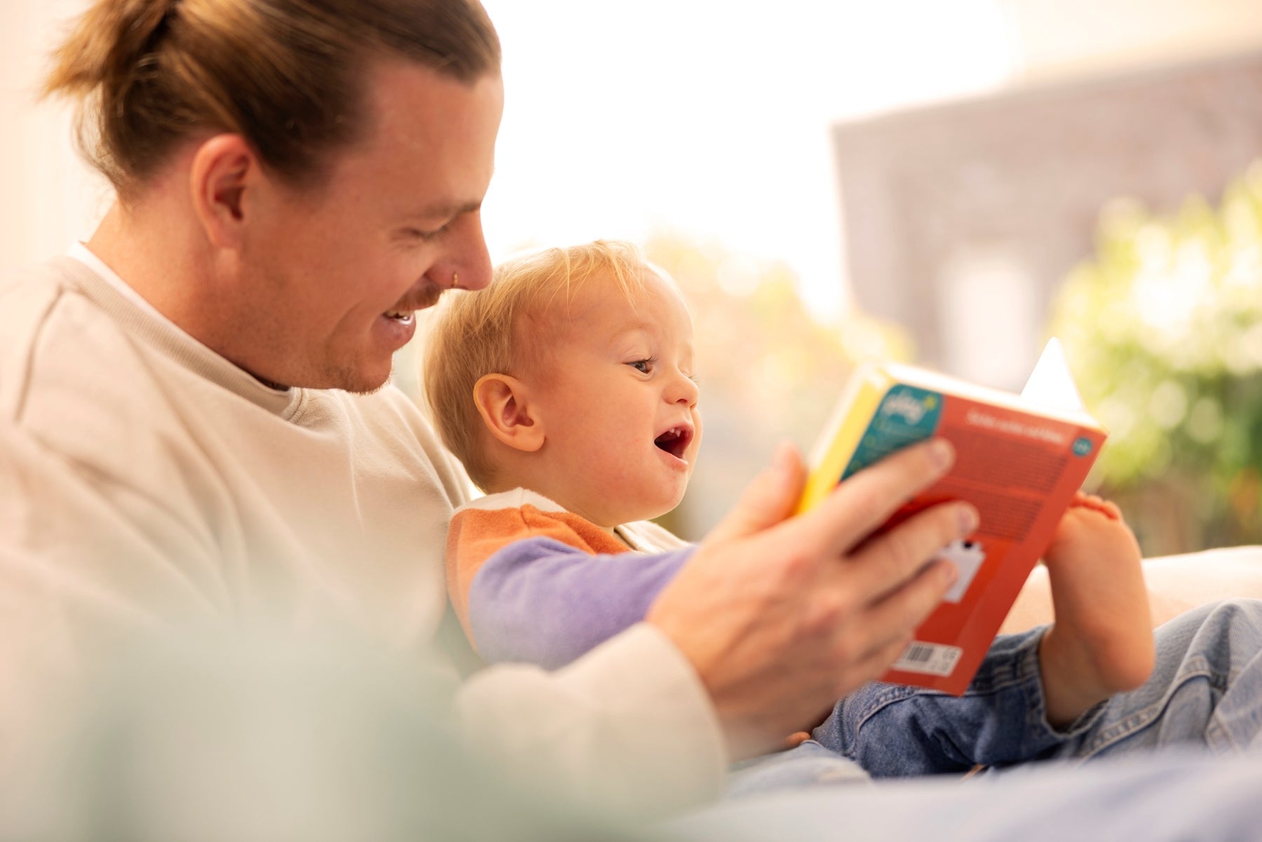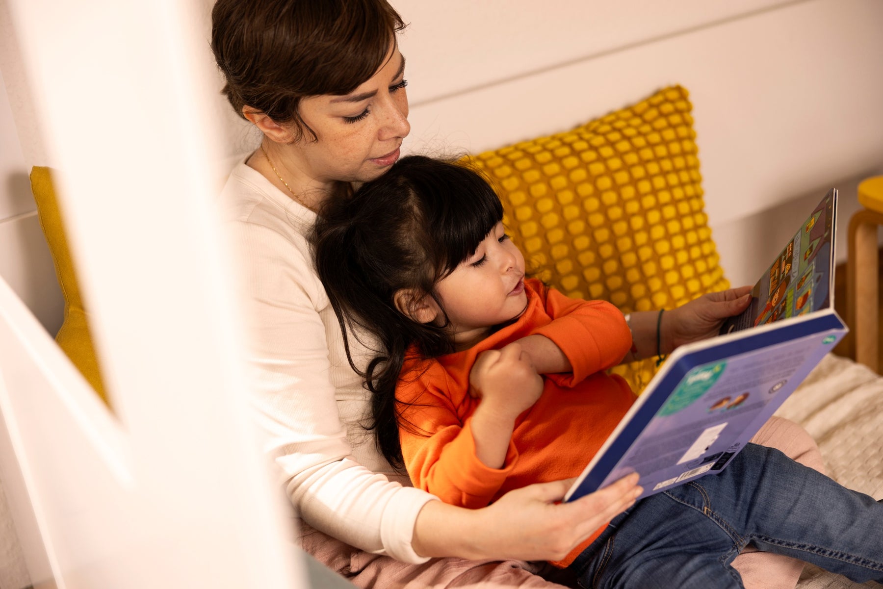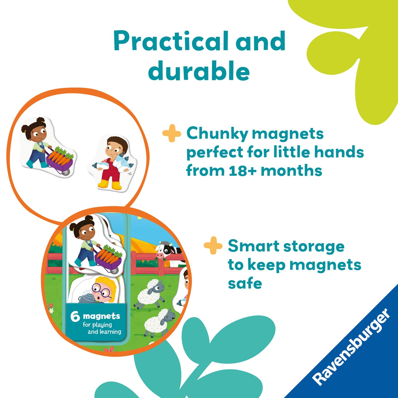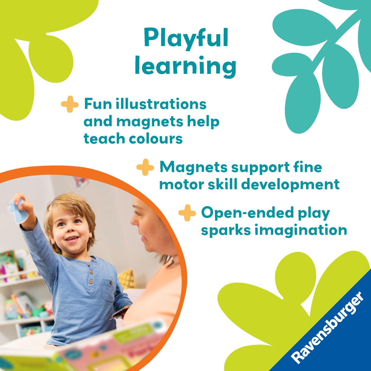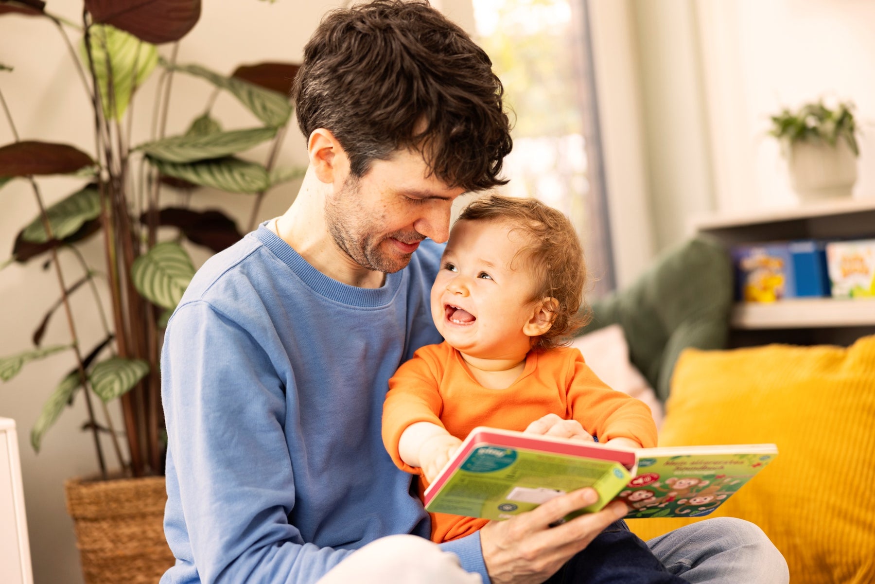 Cardboard book with five double pages, each with a different night-time scene. You then have to find specific things, the owls or the streetlights for example. When you've found them, press the button at the bottom of the page and little lights will shine to show where the items are.