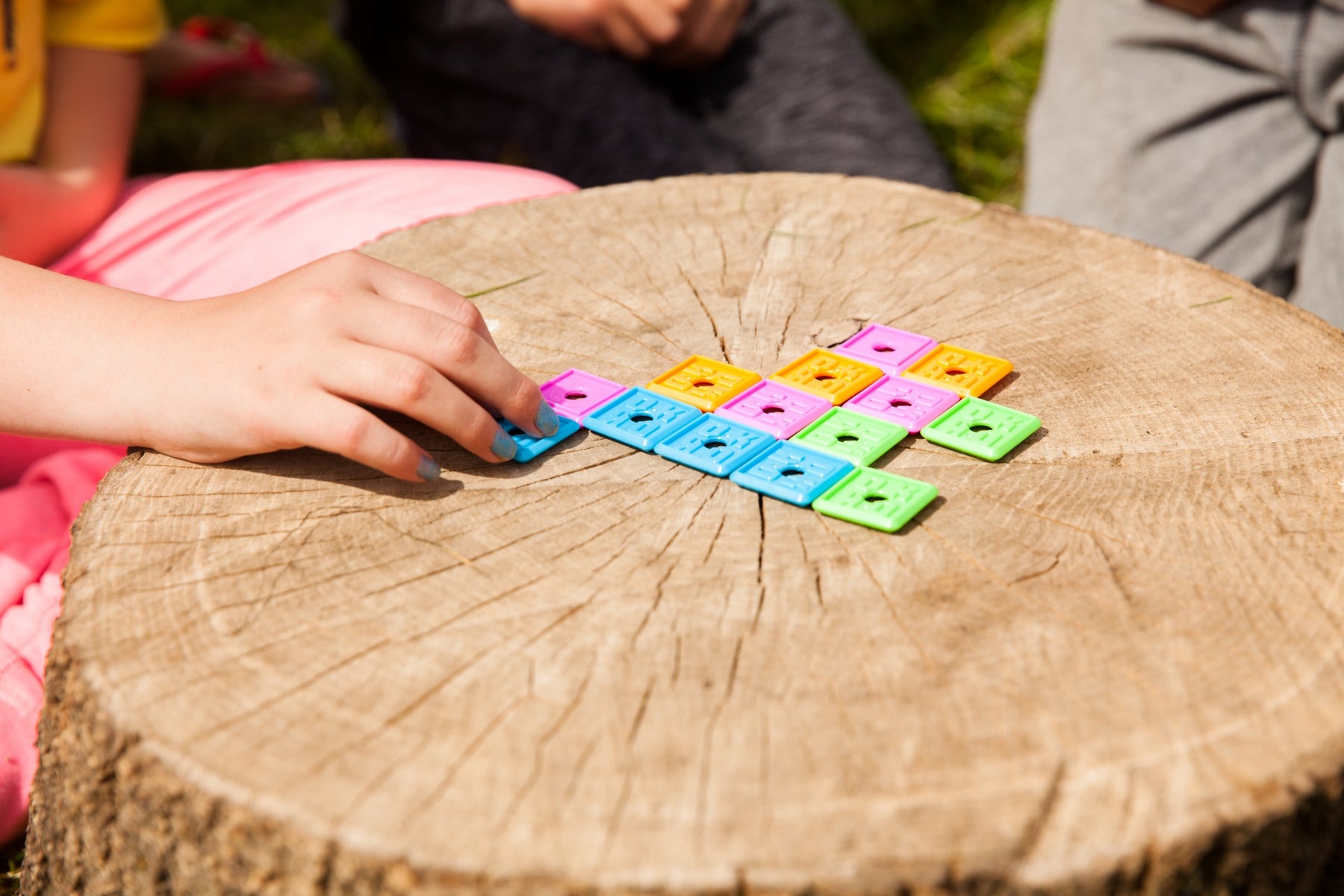 On the other side of the board, older children can play a more conventional game of Scrabble, making up their own words but with bigger tiles and simpler scoring.