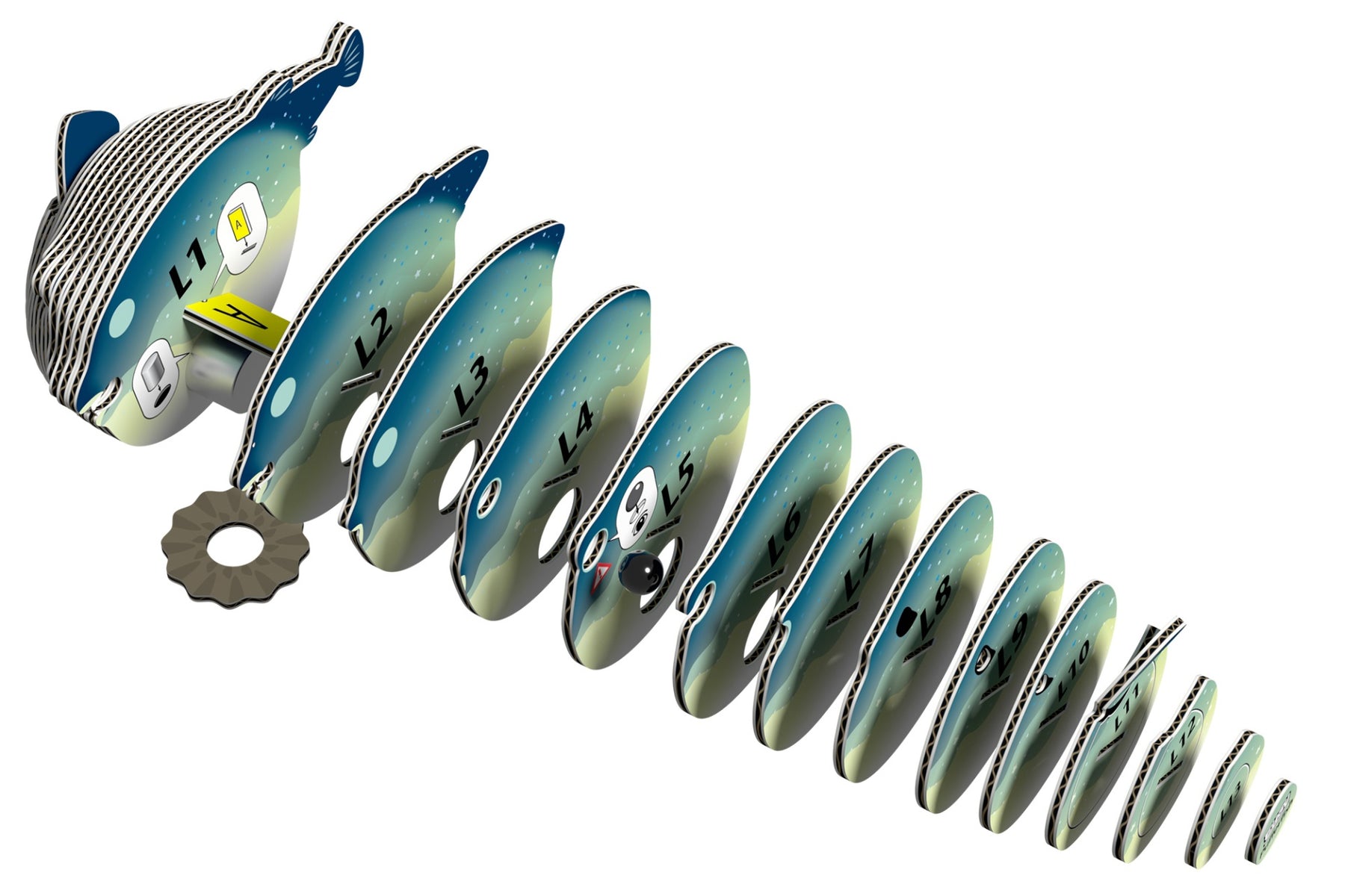 2) Start with the central piece (L1 or R1). Insert the crossbar (but don't glue it) and, using it as a guide, and glue on the next piece (L2 or R2). Layer up the pieces in numerical order, putting a little glue between each layer. It's a little fiddly but also very satisfying as you see the animal taking shape. Take care to put the pieces on in the right order as once the glue sets, you can't rectify any mistakes.