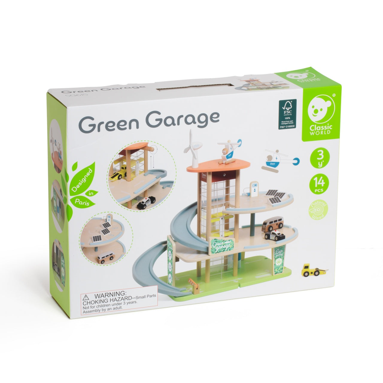 Other than that, it is a great garage for imaginative play - three levels connected with ramps and a car lift. Comes with three vehicles and a helicopter.