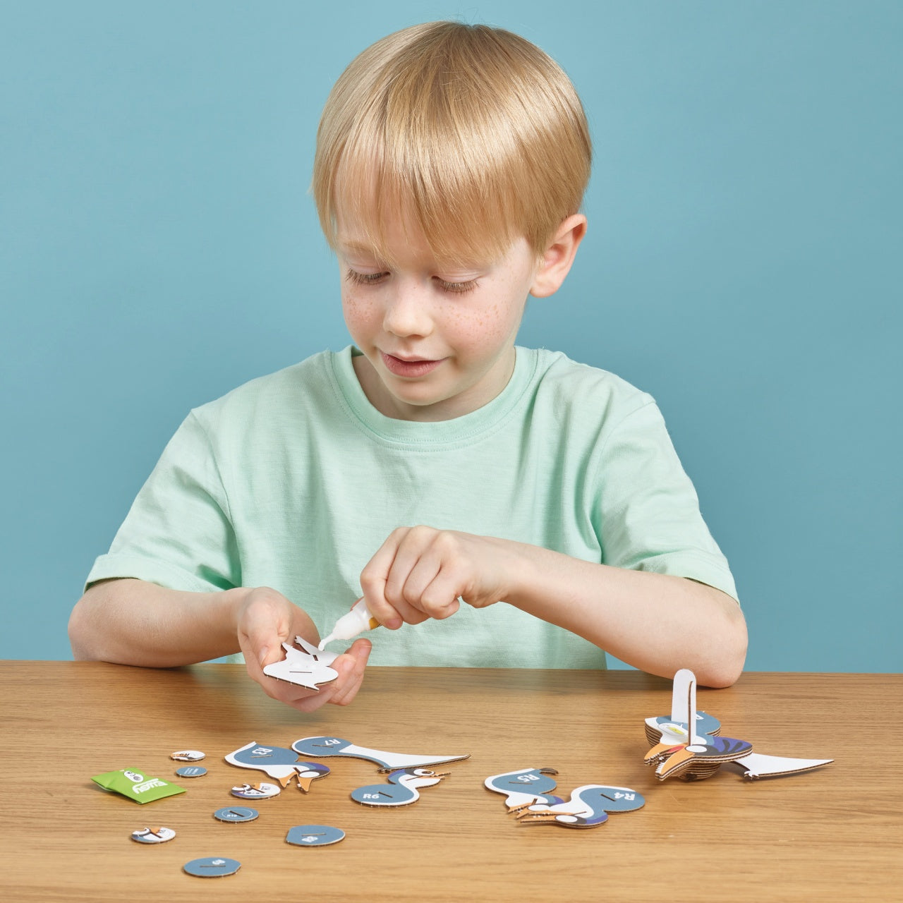Each pack contains seven pieces of cardboard and a tube of PVA glue.
