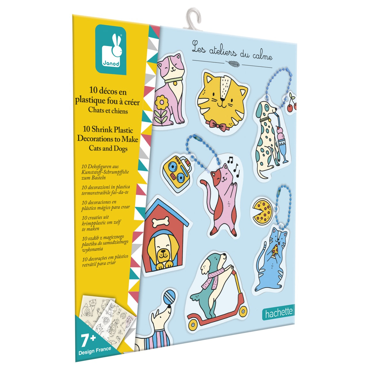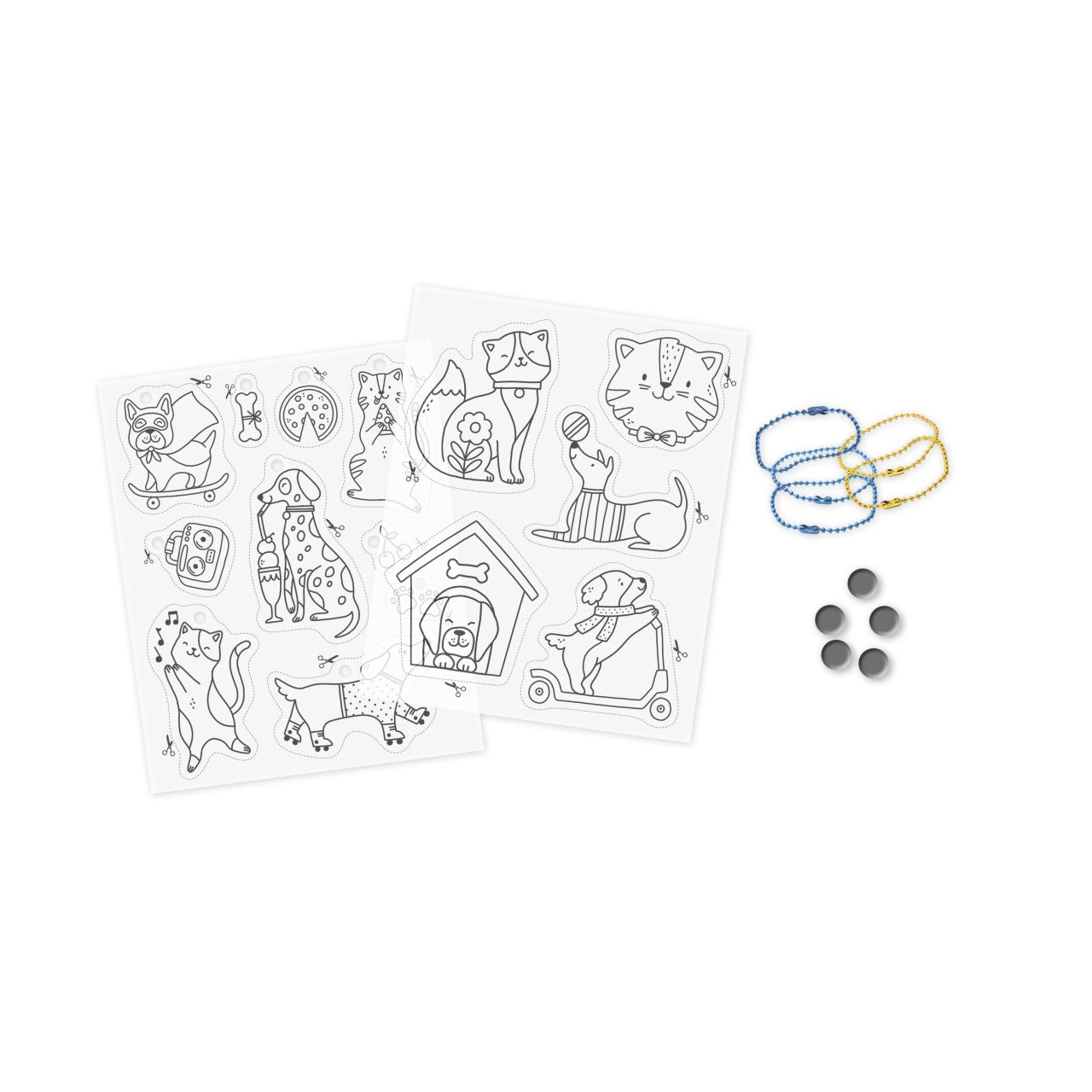 Two sheets of plastic illustrations to colour in, cut out and pop in the oven for two minutes.