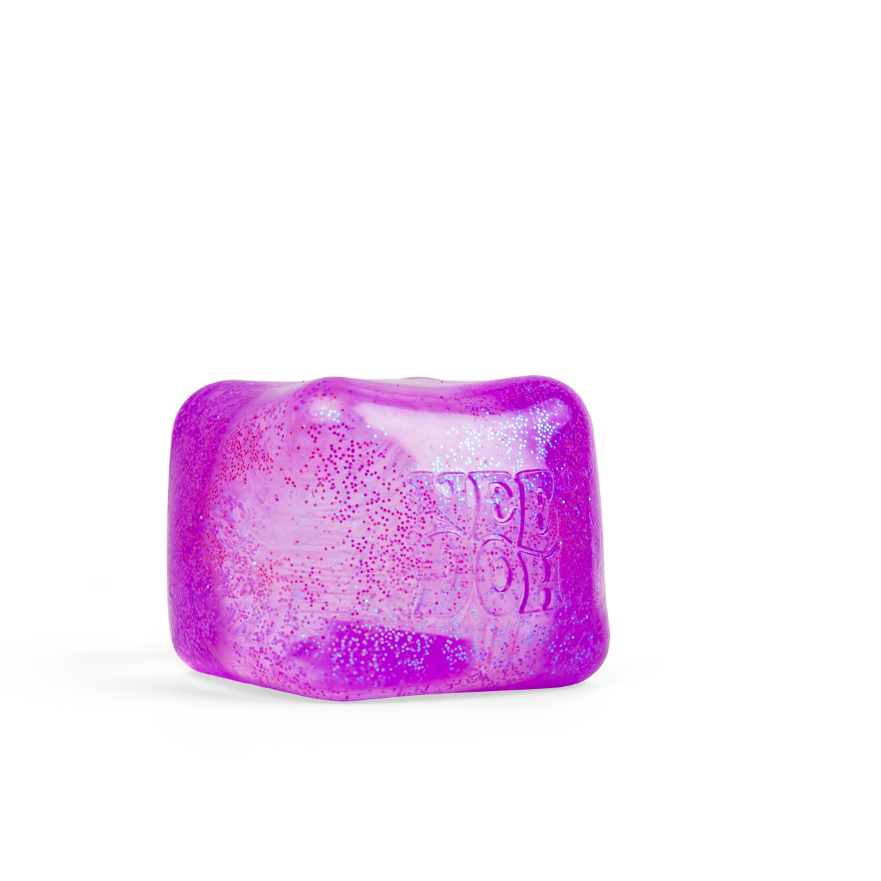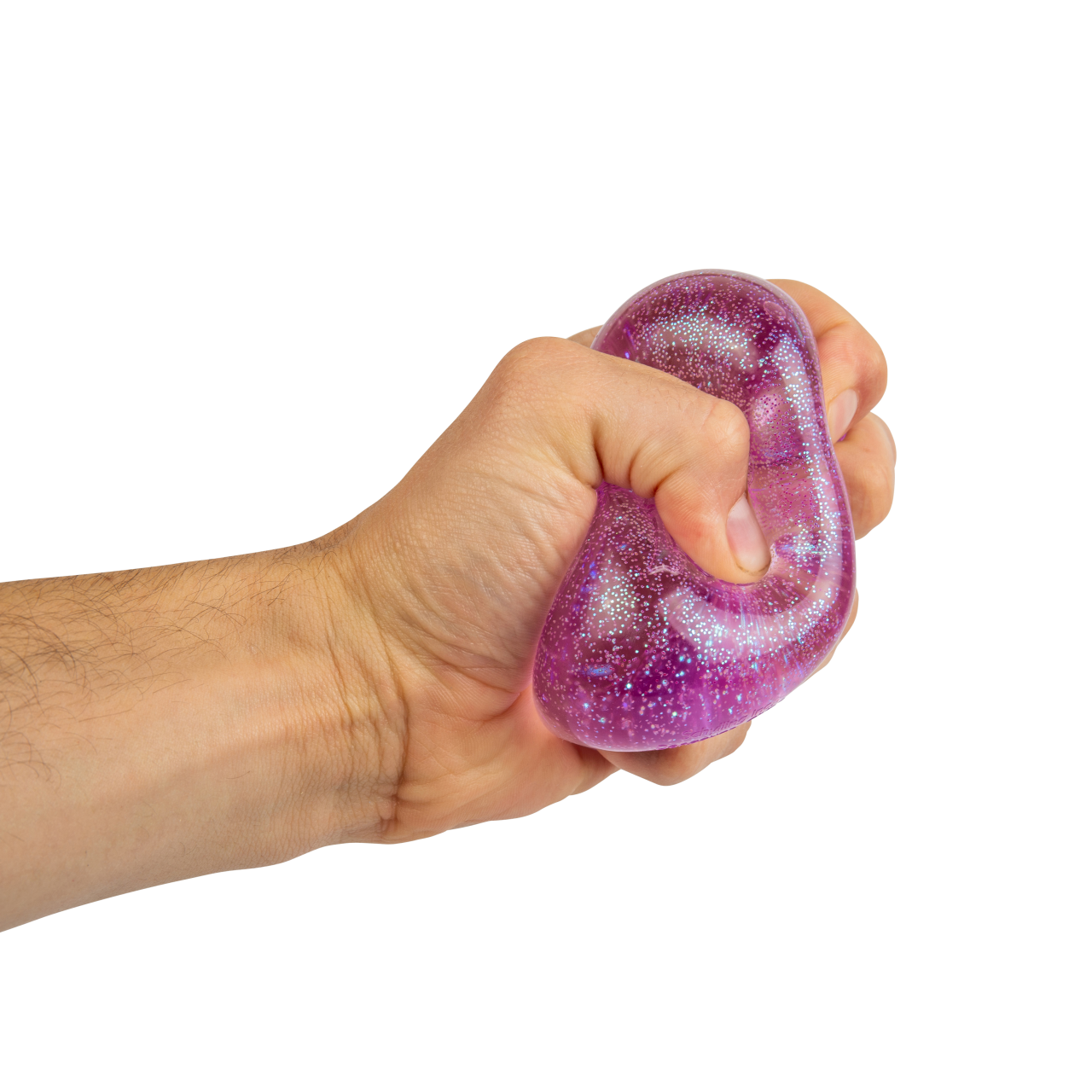 Good solid squish. Semi-translucent with glittery bits in the gel. Plus it glows in the dark.